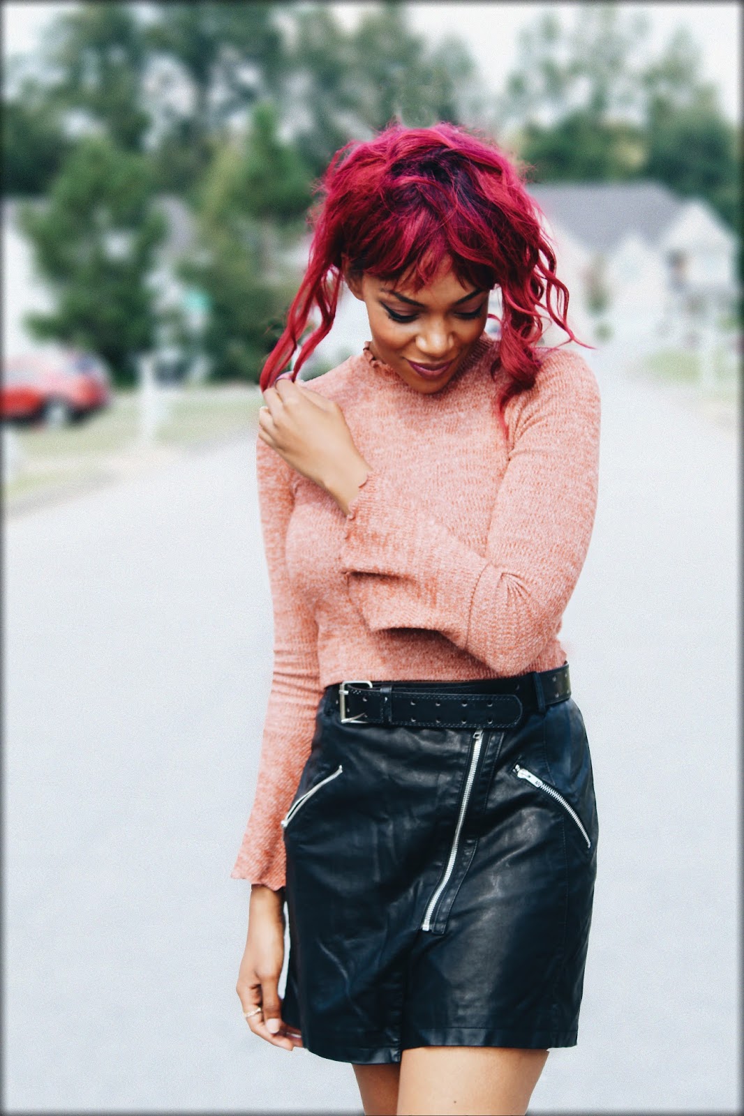 Crop bell-sleeve turtleneck sweater - Forever 21 // skirt - old (similar here) // belt - African beauty supply store // shoes - ASOS